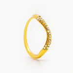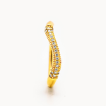 Anello in acciaio dorato caratterizzato da una linea sinuosa e irregolare che avvolge il dito con un design essenziale e moderno. La superficie lucida riflette la luce in modo elegante, creando un effetto dinamico che richiama le forme fluide della natura. Un accessorio versatile, perfetto sia da solo sia in abbinamento ad altri anelli minimali.