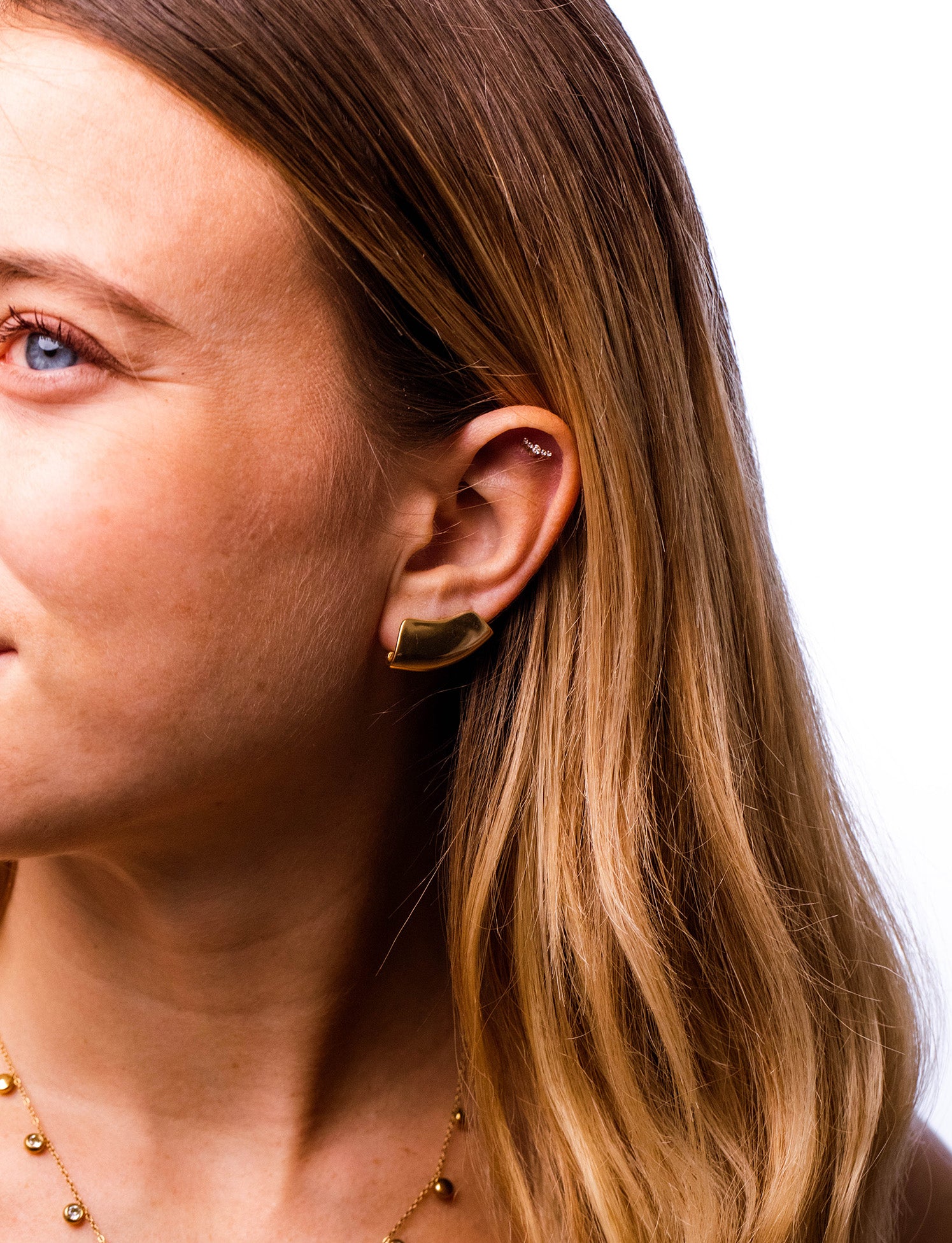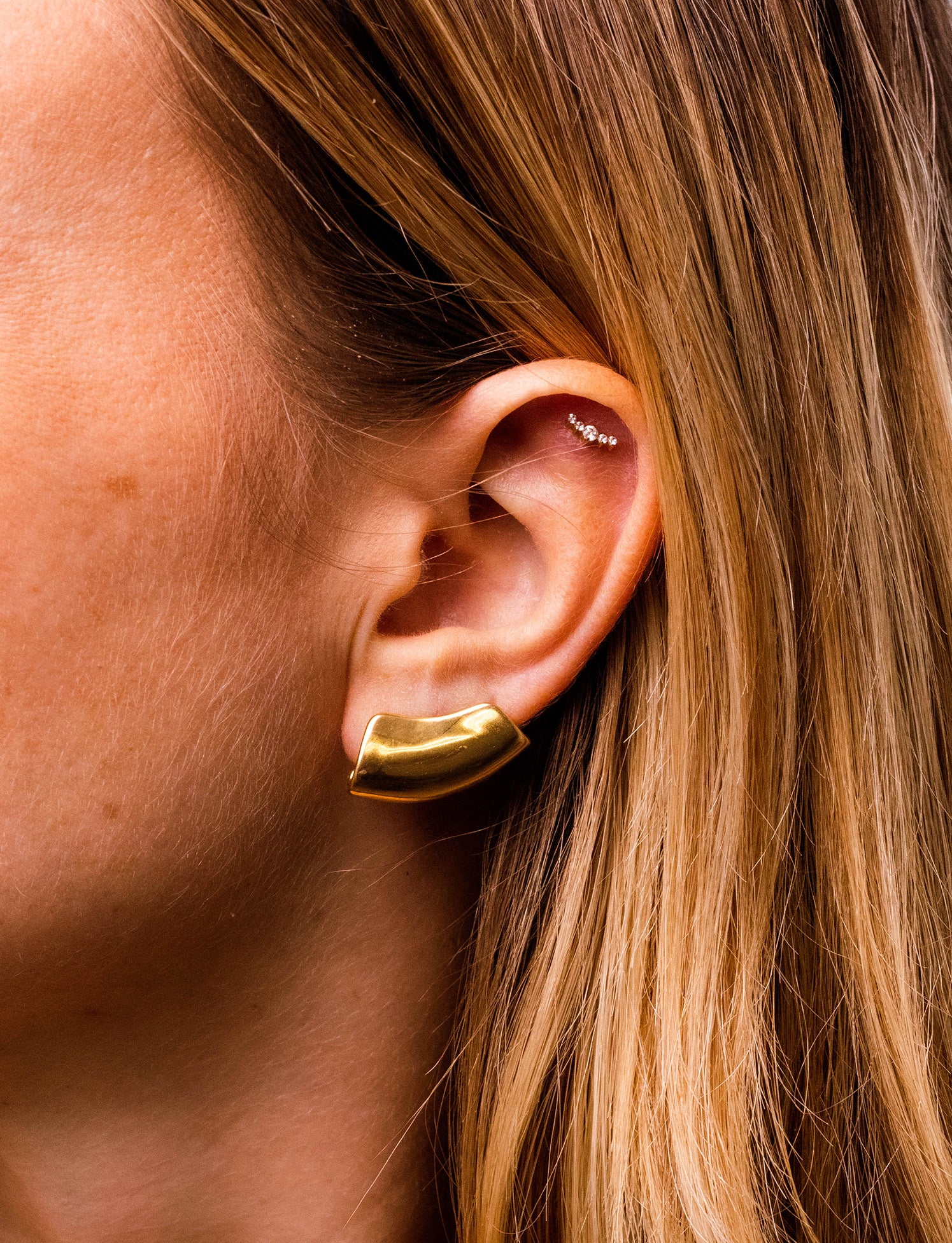 Orecchino a lobo dal design essenziale e contemporaneo, caratterizzato da una forma curva e armoniosa che avvolge delicatamente il lobo.