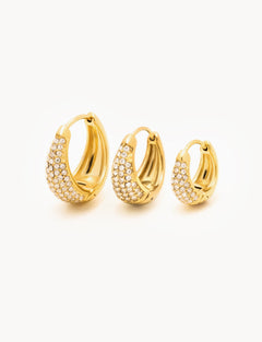 Orecchini a cerchio dalla forma bombata e voluminosa, realizzati in acciaio inox dorato con finitura lucida. La silhouette compatta e morbida dona un effetto moderno e deciso, rendendoli un accessorio versatile da indossare ogni giorno o per occasioni speciali.
