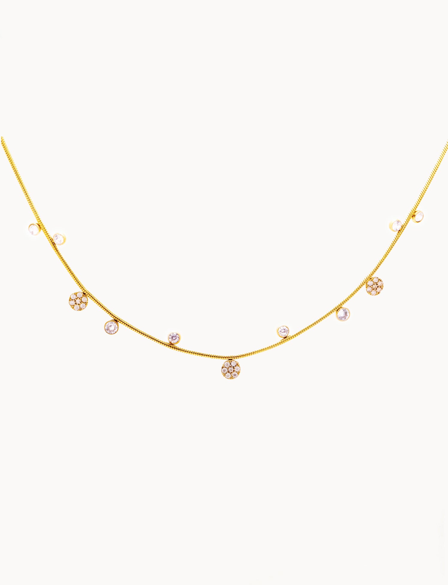 Collana in acciaio inossidabile con zirconi e micro palline.