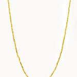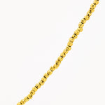 Collana in acciaio inossidabile con finitura dorata lucida, caratterizzata da una catena sottile a maglia arricchita da piccoli elementi rotondi distribuiti lungo tutta la lunghezza. Il design minimal e luminoso la rende perfetta da indossare singolarmente o in abbinamento ad altre collane per un effetto a strati. Chiusura con moschettone per una vestibilità sicura.