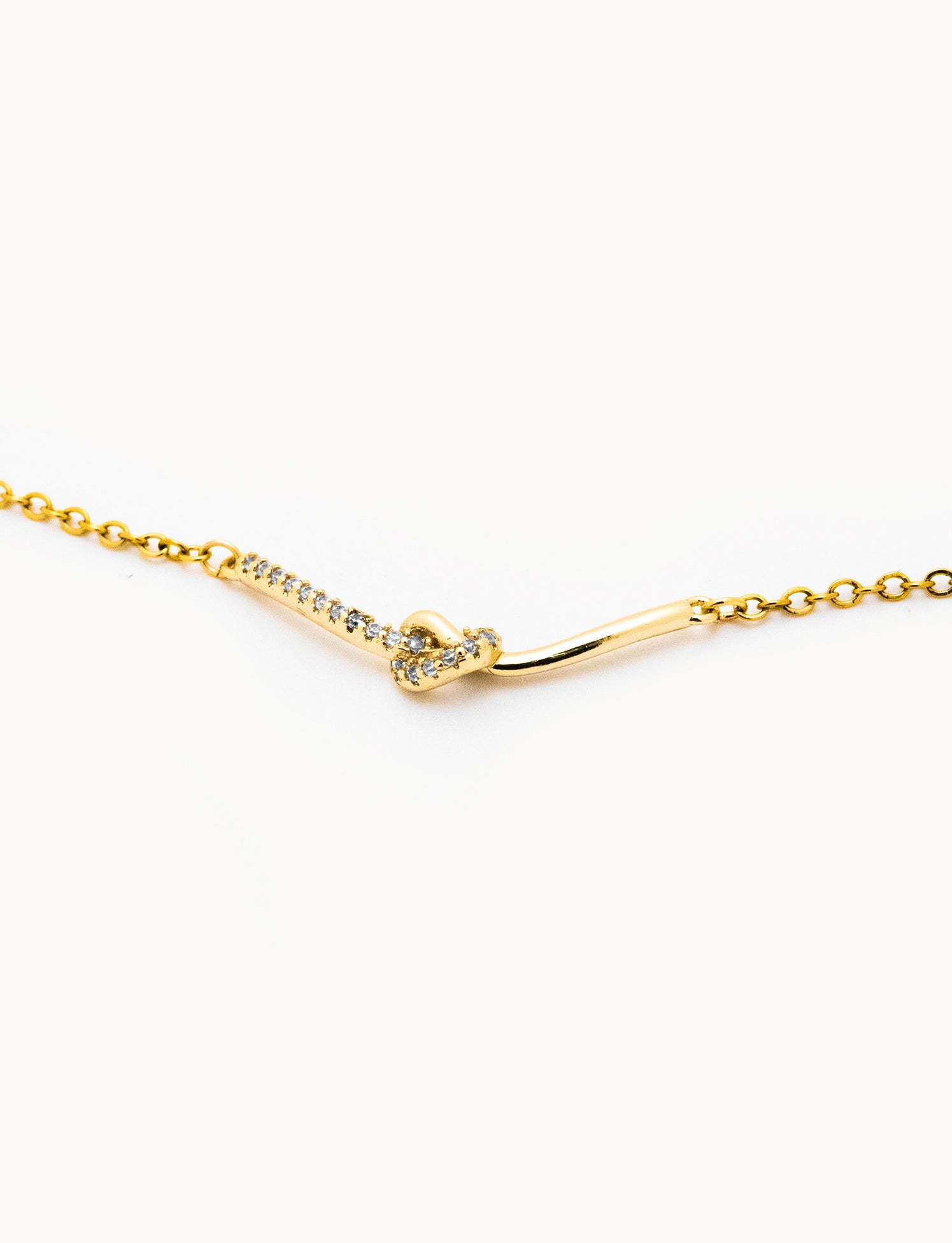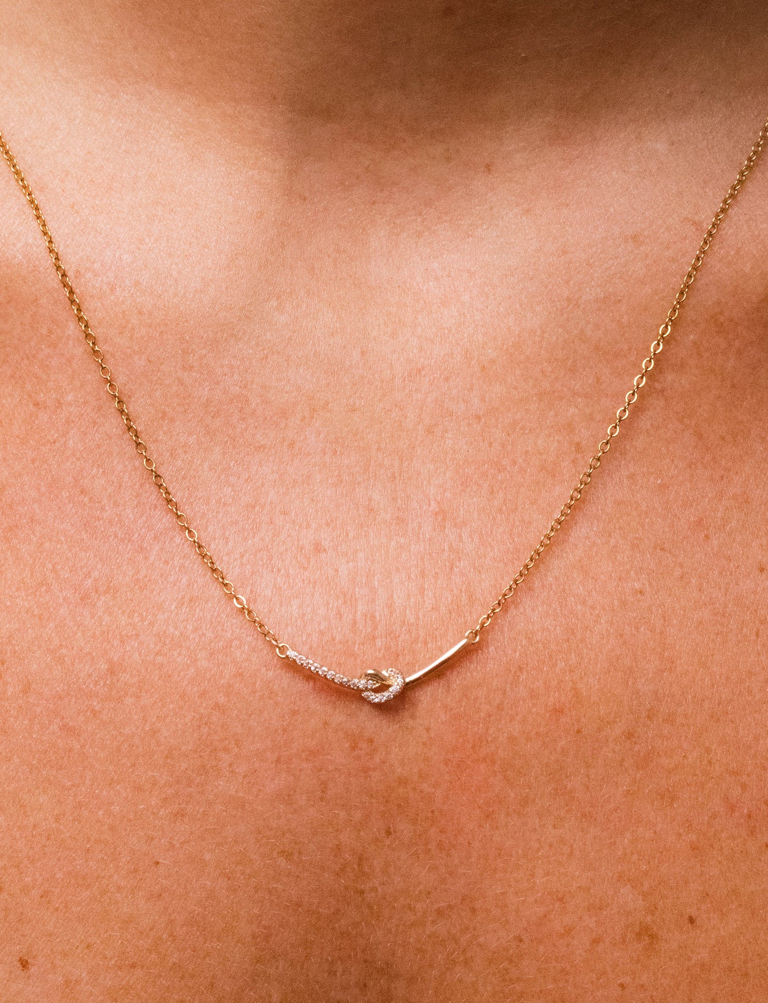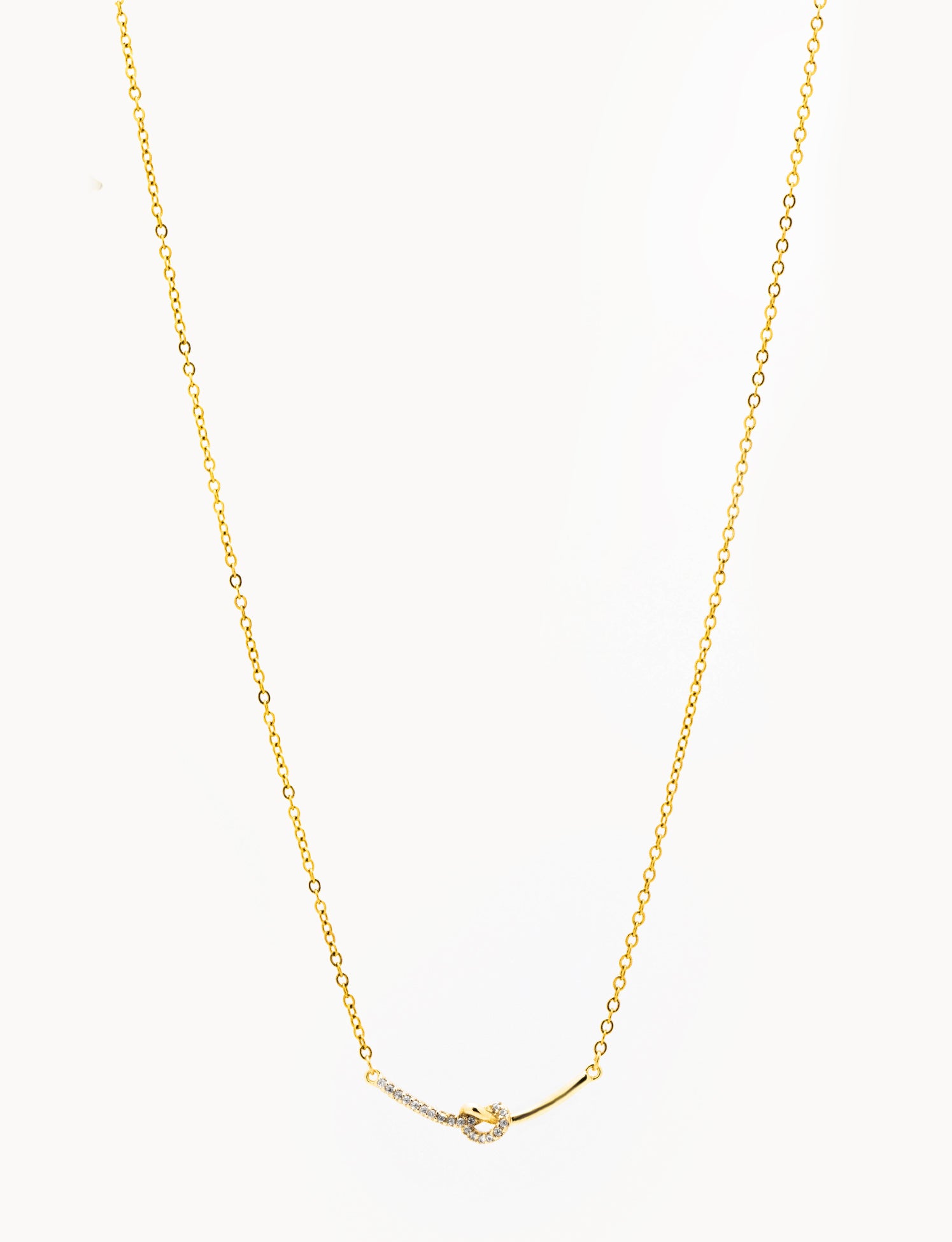 Collana in acciaio dorato con ciondolo a forma di nodo.