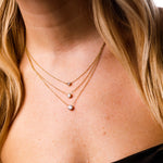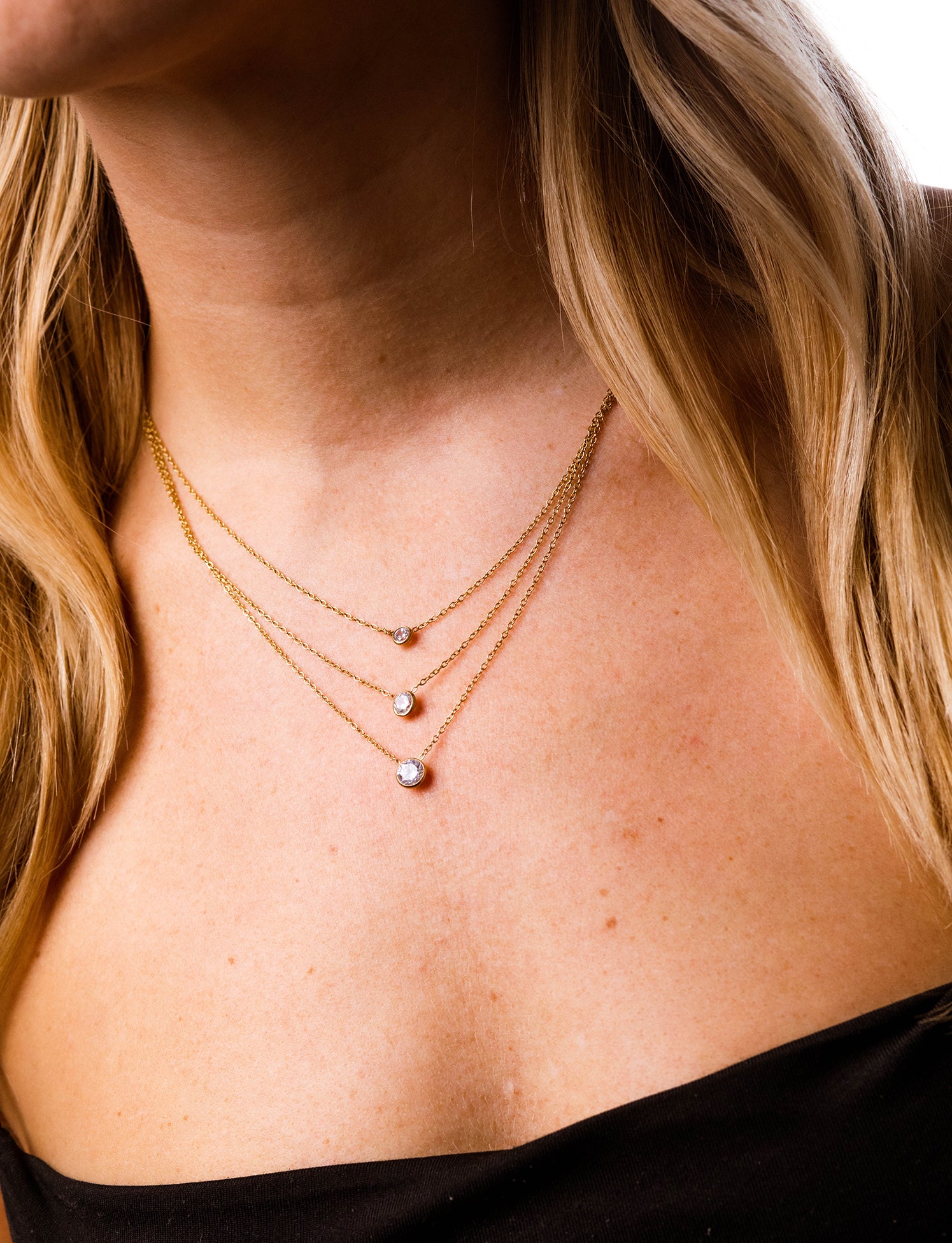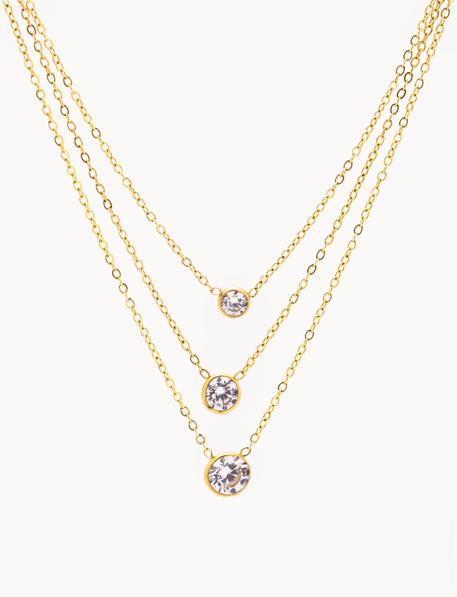 Collana in acciaio inossidabile con tre catenine di diverse altezze con al centro tre punti luce.