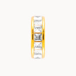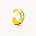 Ear cuff dal design moderno e versatile, caratterizzato da una struttura che abbraccia e avvolge zirconi con taglio quadrato.