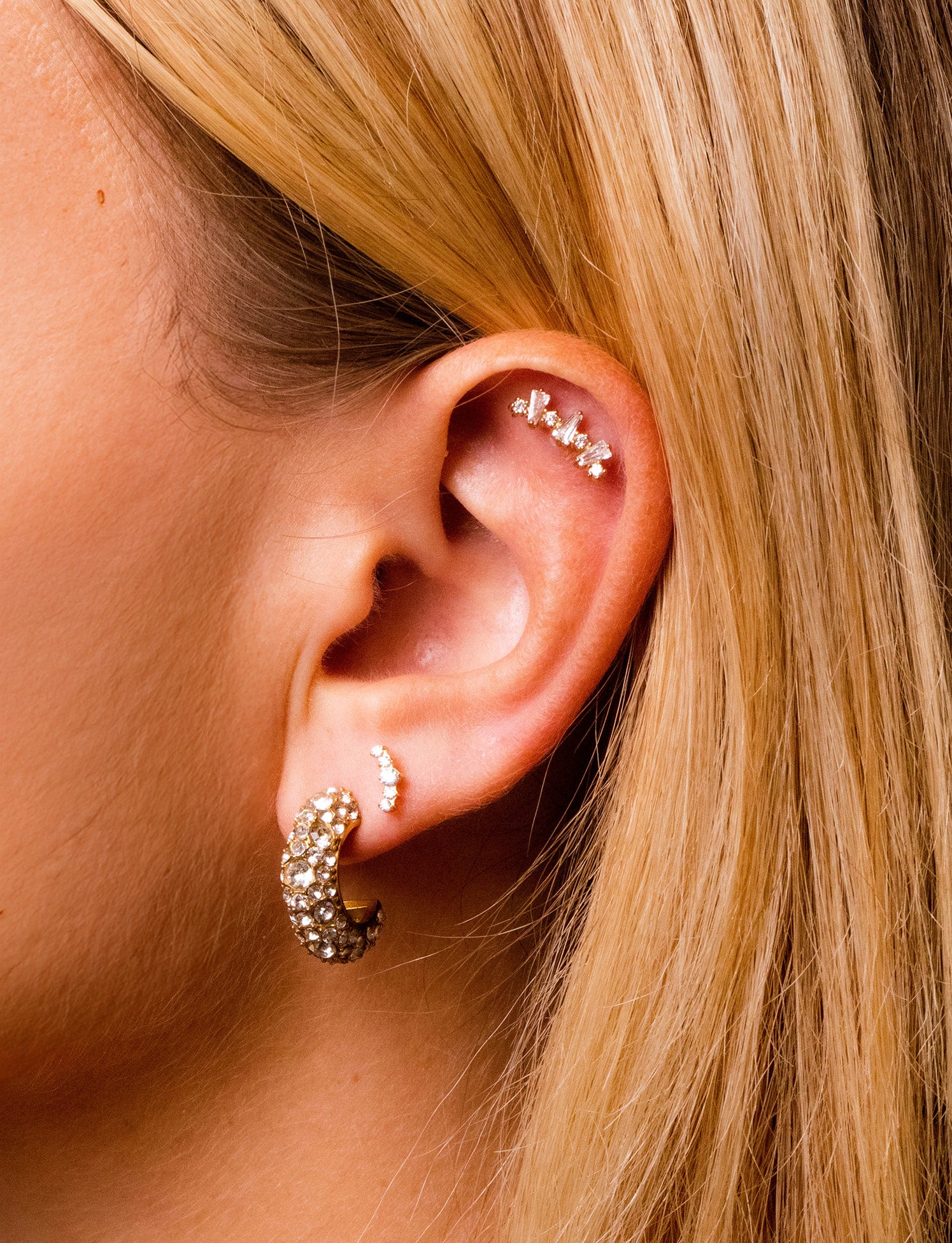 Coppia di orecchini in acciaio con zirconi irregolari