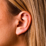 Piercing a cerchio con zircone centrale luminoso, incorniciato da micro sfere che creano un delicato effetto sole. Un design minimal, ma brillante, perfetto per aggiungere un punto luce elegante alla tua composizione di piercing.
